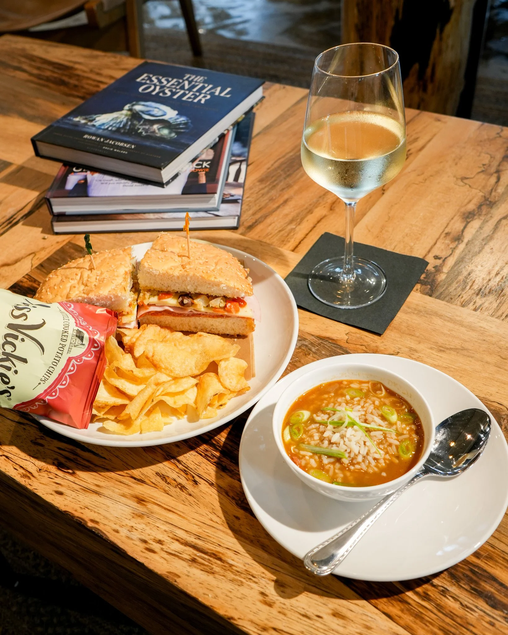 Chicken & sausage gumbo paired with our classic muffuletta, served on Gambino’s bread.